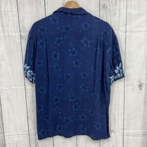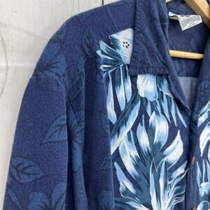 VINTAGE Kennington LARGE Blue Hibisicus Hawaiian Aloha Dad Shirt Button Up 90's