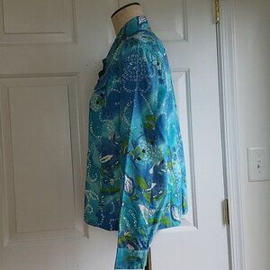 VINTAGE Keren Hart Jacket Coat Floral Blue Top Blouse Shirt Women's WOMAN'S