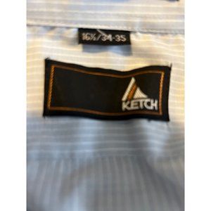 VINTAGE Ketch Dress Shirt Light Gray Pin Strip Single Stitch Button Down Mens Size 16.5 / 34 - 35