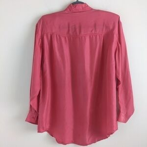 VINTAGE Kikomo Bright Pink Silk Button Down Blouse M Retro
