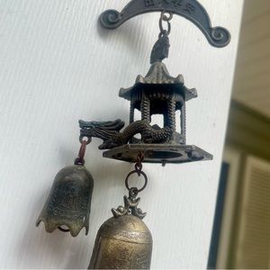 VINTAGE Kwan Yin Prosperity Abundance Wealth Hanging Hanging Copper Bell Dragon