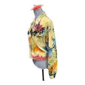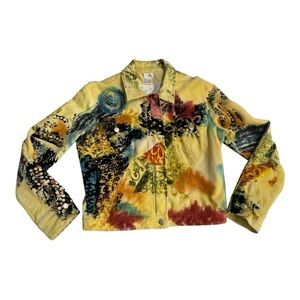 VINTAGE LA CITE PARIS YELLOW JACKET IN MULTI ABSTRACT DESIGN SIZE M