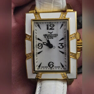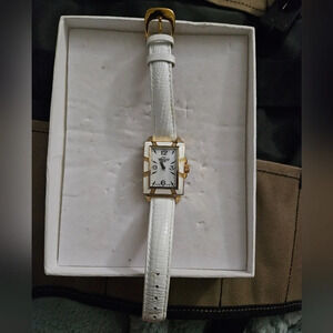 This Beautiful Swiss Made watch has it all diamonds 16 to be exact Gold and white ceramic bezel and a white genuine leather strap to top it off!there is nothing to be ashamed of here this watch is truly Timeless!!! make an offer! Bundle and Save!!!
