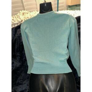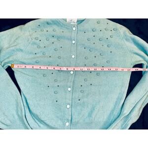 VINTAGE LAMPL AQUA BLUE STUDDED CARDIGAN SWEATER S