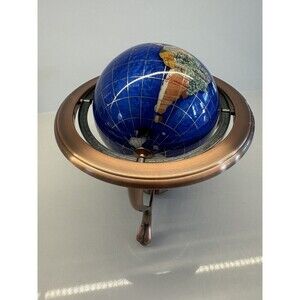 You are looking at a Vintage Lapis Lazuli Table Top World Globe that measures approximately 10" in diameter and 10" in height.