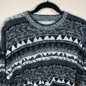 VINTAGE LARGE MICHAEL GERALD GEOMETRIC PRINT SWEATER LONG SLEEVE 80s