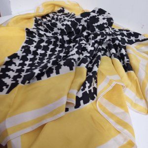 VINTAGE LARGE SILK SCARF IN YELLOW WHITE AND BLACK