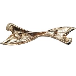 VINTAGE LARGE TWIST DESIGN MODERNIST GOLDTONE BROOCH WITH CRYSTAL DETAIL