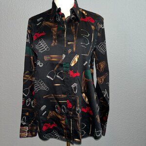 VINTAGE LAUREN RALPH LAUREN BLACK EQUESTRIAN PRINT BLOUSE SHIRT TOP