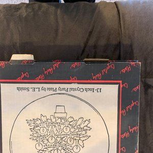 VINTAGE L.E. SMITH 13" CRYSTAL PARTY PLATE, CHRISTMAS SERVING PLATE, MADE IN USA