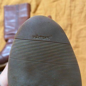 These will go with everything. Vintage and gorgeous, high quality Dexter (made in USA) pull on thick leather boots with that coveted leather patina. Size 8.5 for narrow feet. Calf size approx. 14" circumference. Re-soled with Vibram rubber means a long life and good traction. Perfect for the the coming seasons.
