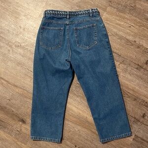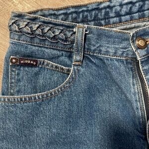 STYLE: Vintage lee rider capris, braided waistband detailing, and red thread details, a little flare but more straight leg, fits higher waisted
