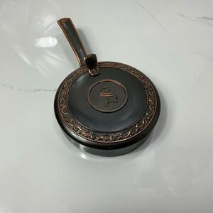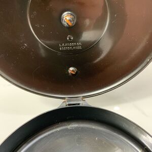 Vintage 50’s L.E. Mason Co. Of Boston Massachusetts Silent Butler/Crumb Catcher. Beautifully designed heavy Brass and Copper hinged lid with monogrammed Old English “S”. Excellent condition!