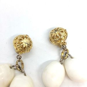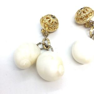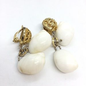 VINTAGE LES BERNARD SEA SHELL CLIP ON EARRINGS GOLD TONE ORNATE DANGLE