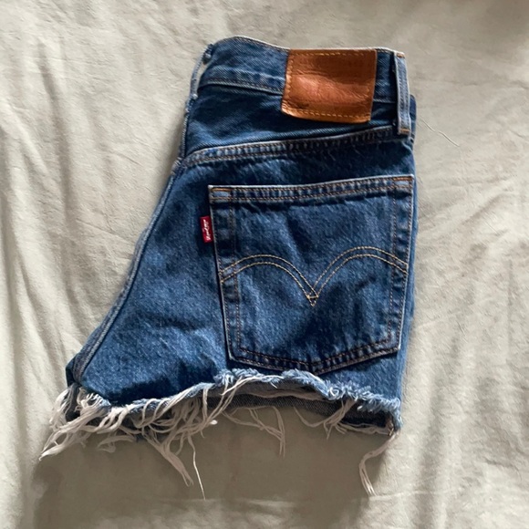 dark wash Levi denim shorts
