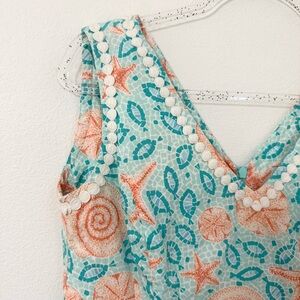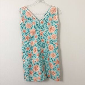 Cute vintage designer Lilly Pulitzer turquoise, peach/coral and white sea life motif lined shift dress.