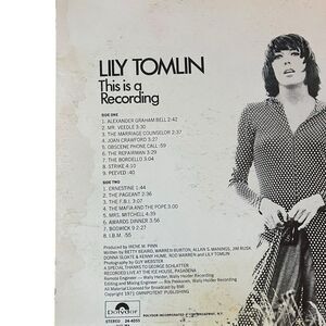 Keywords: Lily Tomlin, comedy vinyl, stand-up comedy, 1971 LP, Polydor Records, original pressing, black vinyl, 12" record, vintage comedy, stereo sound, collectible LP, classic comedy, vinyl record, comedy album, pre-owned.