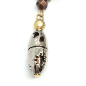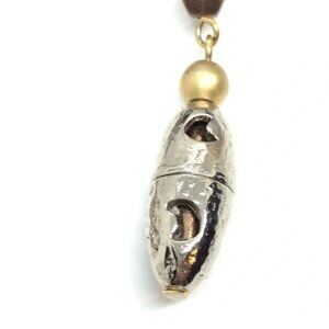Bold vintage LIZ CLAIBORNE INC. clip-on earrings featuring textured gold and silver sun and moon tops with mixed metal dangles featuring stars and crescent moon cut outs. Lightweight and full of retro charm, these earrings have a brushed brass bead, faceted coppery accent, and openwork silver-tone drop. Measures approx. 3” long. Signed on the back. Some light wear from age but nothing that detracts from their fabulous ‘80s statement style.