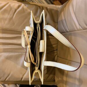 The purse has 2 main compartments with 2 open inner compartments and 2 zippered innner compartments.