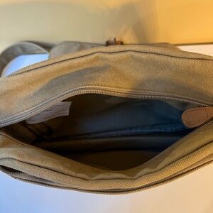 THIS L.L. BEAN MESSENGER BAG IS IN EXCELLENT PRE-OWNED CONDITION. ALL ZIPPERS ARE FULLY FUNCTIONAL AS IS THE TUCK LOCK BRASS BUCKLE CLOSURE. THERE ARE SEVERAL COMPARTMENTS FOR ORGANIZATION; A LARGE POCKET ON THE BACK WHICH HAS A VELCRO CLOSURE, A ZIPPERED COMPARTMENT ON THE FRONT AND A SMALLER ZIPPERED POCKET INSIDE THE GENEROUS INTERIOR. THE BAG MEASURES APPROXIMATELY 10X10. THE STRAP IS SUBSTANTIALLY WIDE FOR COMFORT AND IS ADJUSTABLE. THANK YOU FOR LOOKING