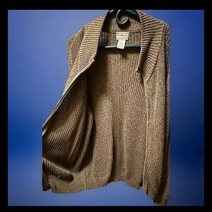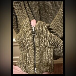 VINTAGE LL Bean Rib Knit Full Zip Sweater Jacket Mens LARGE Cotton, Olive Green