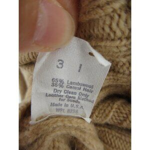 VINTAGE LL Bean Sweater Large 80s Lambswool Camel Leather Cardigan USA