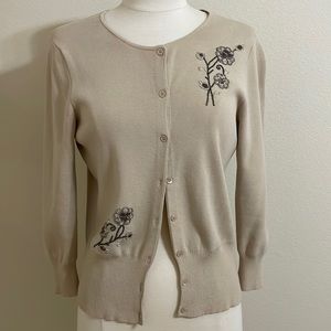 VINTAGE LOFT Womens Tan Cardigan Beaded Floral Embellished Size Small