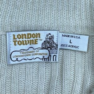 VINTAGE LONDON TOWNE LARGE IVORY WHITE CARDIGAN SWEATER RETRO ROCKABILLY