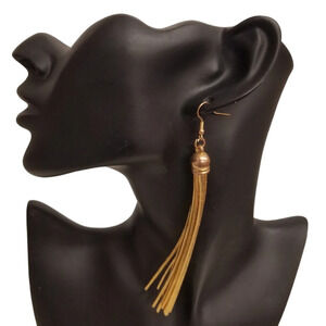 VINTAGE LONG GOLDTONED FRINGE STATEMENT EARRINGS