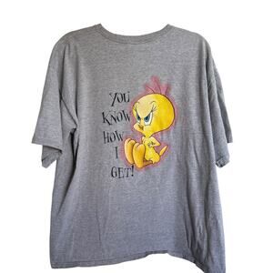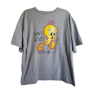 VINTAGE LOONEY TUNES 2001 TWEETY BIRD DON’T START WITH ME Heather Gray T SHIRT