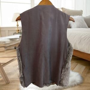VINTAGE LORI WEIDNER SILVER GREY FAUR FUR VEST SUEDE BACK FAUX FOX HAIR