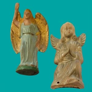 CHARMING VINTAGE LOT OF ANGLE CHRISTMAS ORNAMENTS DECORATIONS BELONGING TO MY GRANDMOTHER FROM THE 50'S