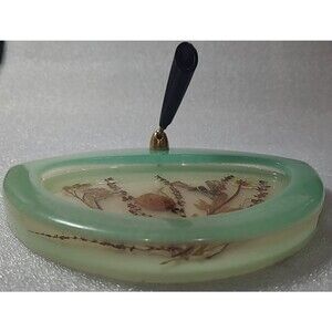 This vintage Lucite-based pen holder with dried flowers, handmade in Alaska, is a unique and charming desktop collectible. Made with resin and Lucite, this pen holder showcases a rustic and authentic design that is sure to add character to any workspace. The inclusion of dried flowers adds a whimsical touch, making it a fun and unconventional addition to a collection of pens and writing instruments. This product is a one-of-a-kind piece that celebrates both vintage aesthetics and artistic craftsmanship.