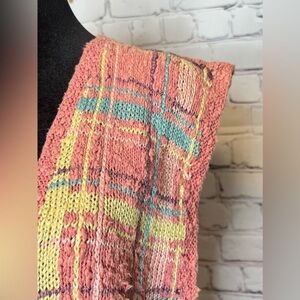 VINTAGE LYNN NOVAK HAND KNITTED COTTON LINEN VEST | Pink Yellow Blue Size Small