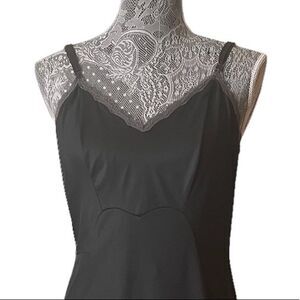 VINTAGE Lace Trim Nylon Slip Dress Gray