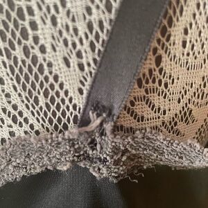 Vintage Lace Trimmed Nylon Slip Dress in gray. Features a sweetheart neckline trimmed out in a lighter gray shade of lace, adjustable slider straps, & lace trim on the hemline. Tag is difficult to make out other than the nylon content. In good preloved condition with normal wear consistent with vintage age including one of the straps that needs reinforcement on the back (see pic 5). Could be repaired for those that sew. Please check measurements carefully prior to purchasing. Approximate measurements lying flat: 16.5” from pit to pit & 32” from shoulder to hem. Bundle to maximize shipping!