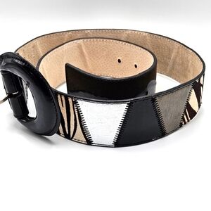 VINTAGE Lake Short Drive Patchwork Animal Print Genuine Leather Belt Small S