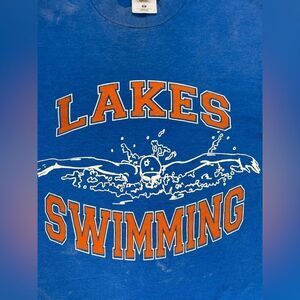 THIS ITEM IS PRE OWNED 100% AUTHENTIC LAKES SWIMMING T-SHIRT SIZE SMALL