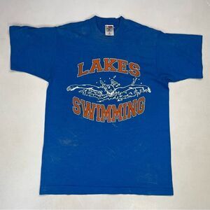 VINTAGE Lakes Swimming Graphic T-shirt Men Small Blue 90s Single Stitch