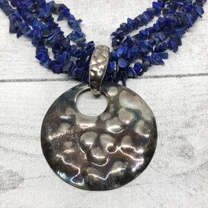 VINTAGE Lapis Lazuli Sterling Silver Pendant Statement Necklace Signed