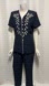 📺 VINTAGE Late 90’s Women’s Navy White Embroidered Pantsuit Top & Bottom M