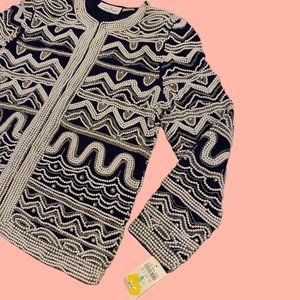 VINTAGE Laurence Kazan Navy Beaded SILK Jacket Blazer New With Tags