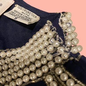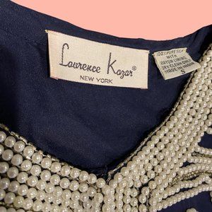 VINTAGE Laurence Kazan Navy Beaded SILK Jacket Blazer Size Small NWT