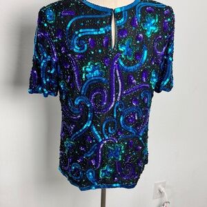 VINTAGE Laurence Kazar 100% Silk all over Sequin Formal Cocktail Top Size M