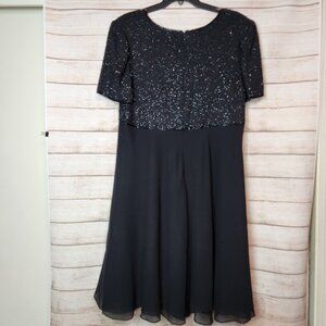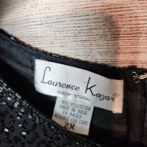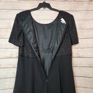 VINTAGE Laurence Kazar Dress Womens 2X Black Beaded Sequin A Line Evening Midi