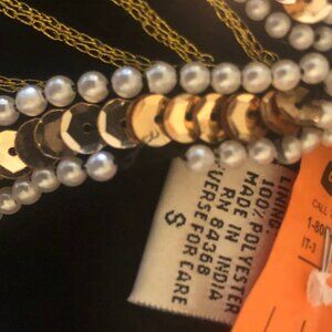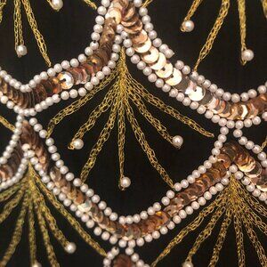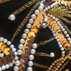 Beautiful gold embroidery/sequins + pearl beads.