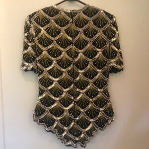VINTAGE Laurence Kazar silk/beaded formal top sz S