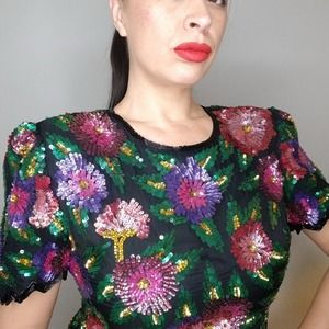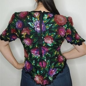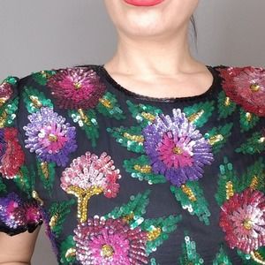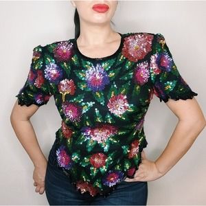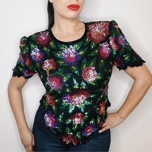 Vintage | Lawrence Kazar Multicolor Sequined Top