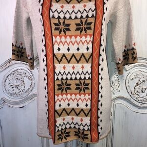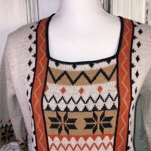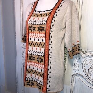 VINTAGE Le Roy Knitwear Square Neck Print 3/4 Sleeve Tunic Sweater
