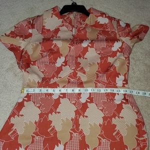 Adorable leaf pattern dress! Tag says size 18, but I'd say closer to 12/14. (measurements in photos)